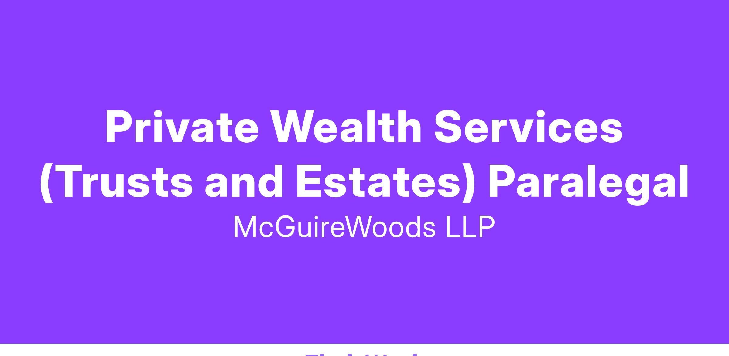 McGuireWoods LLP has an opening for a Private Wealth Services (Trusts and Estates) Paralegal in our Charlottesville office. The Paralegal prepares accountings and legal documents for multiple attorneys in the Tax & Employee Benefits - Private Wealth Services group and oversees trust and estate administration including probate court processes and procedures along with preparation of various tax returns related to estate administration/probate process. This position performs substantive accounting related legal work under the supervision of the attorneys and has frequent interaction with clients, court personnel and others.