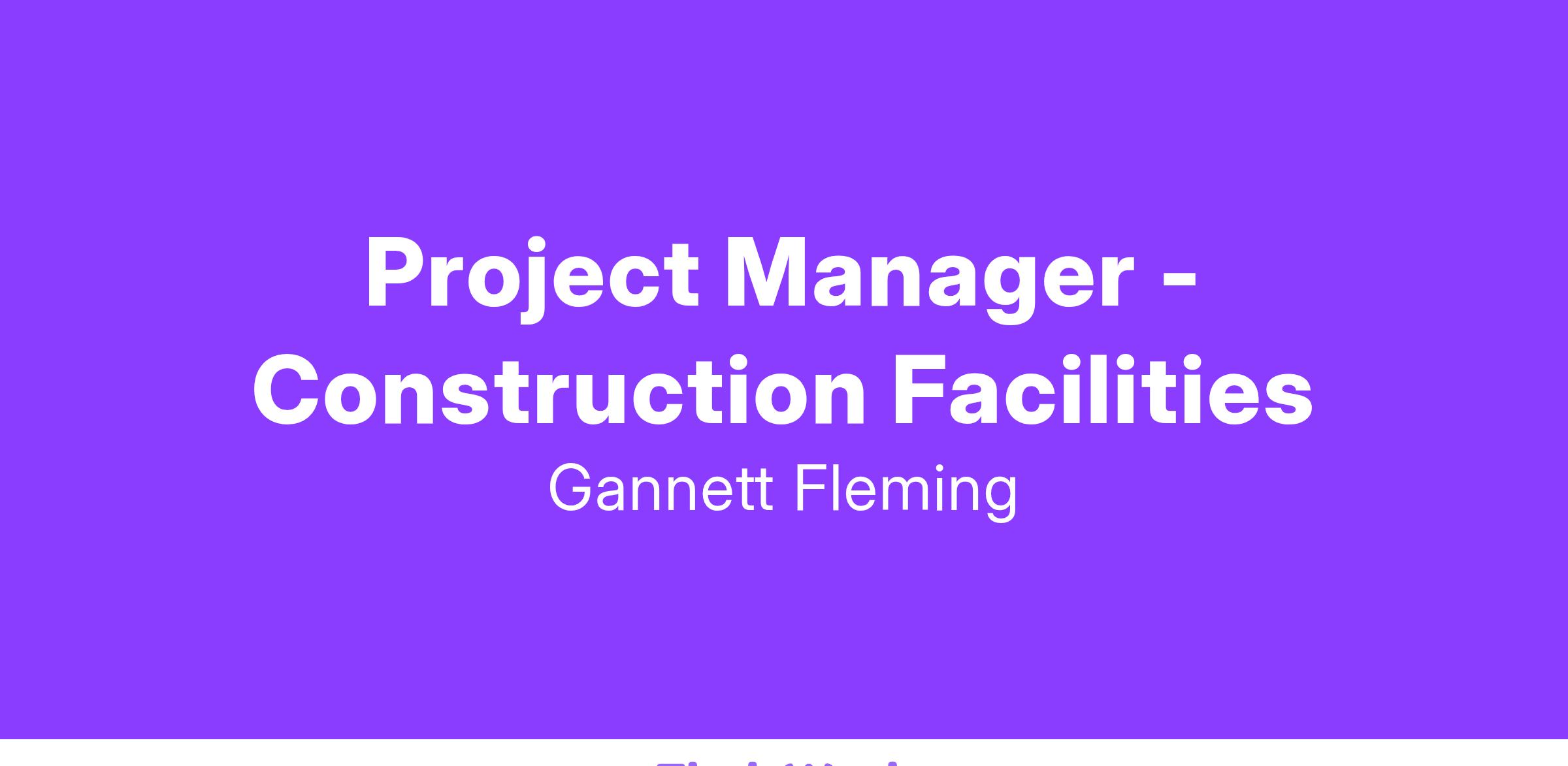 Don't miss out on being a part of the growth at Gannett Fleming! Our Construction Management team is looking for a number of upcoming positions including a Project Manager - Construction to join our family. Join us to contribute to our on-going success while setting the pace of your own career!