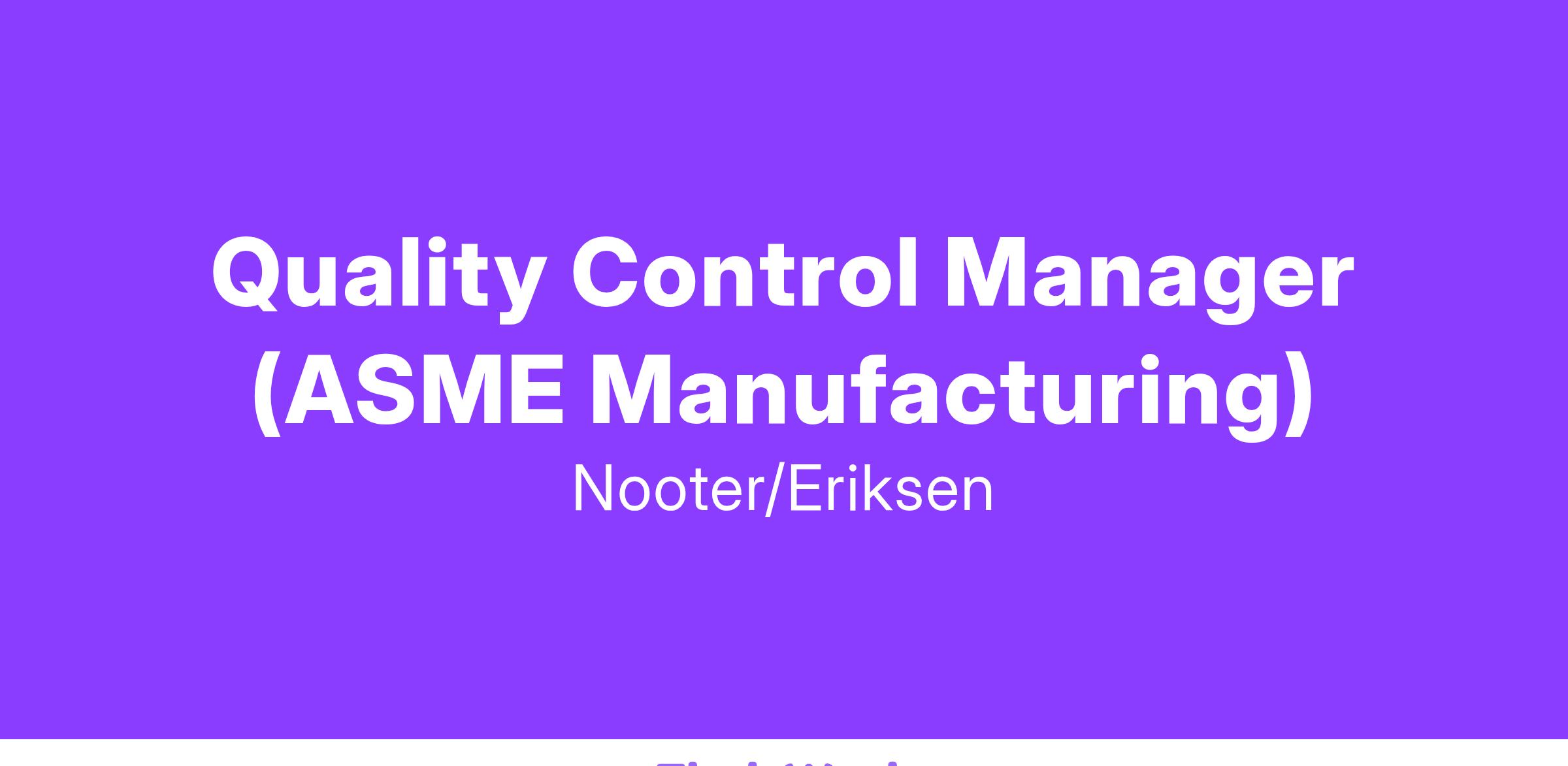 Quality Control Manager (ASME Manufacturing)