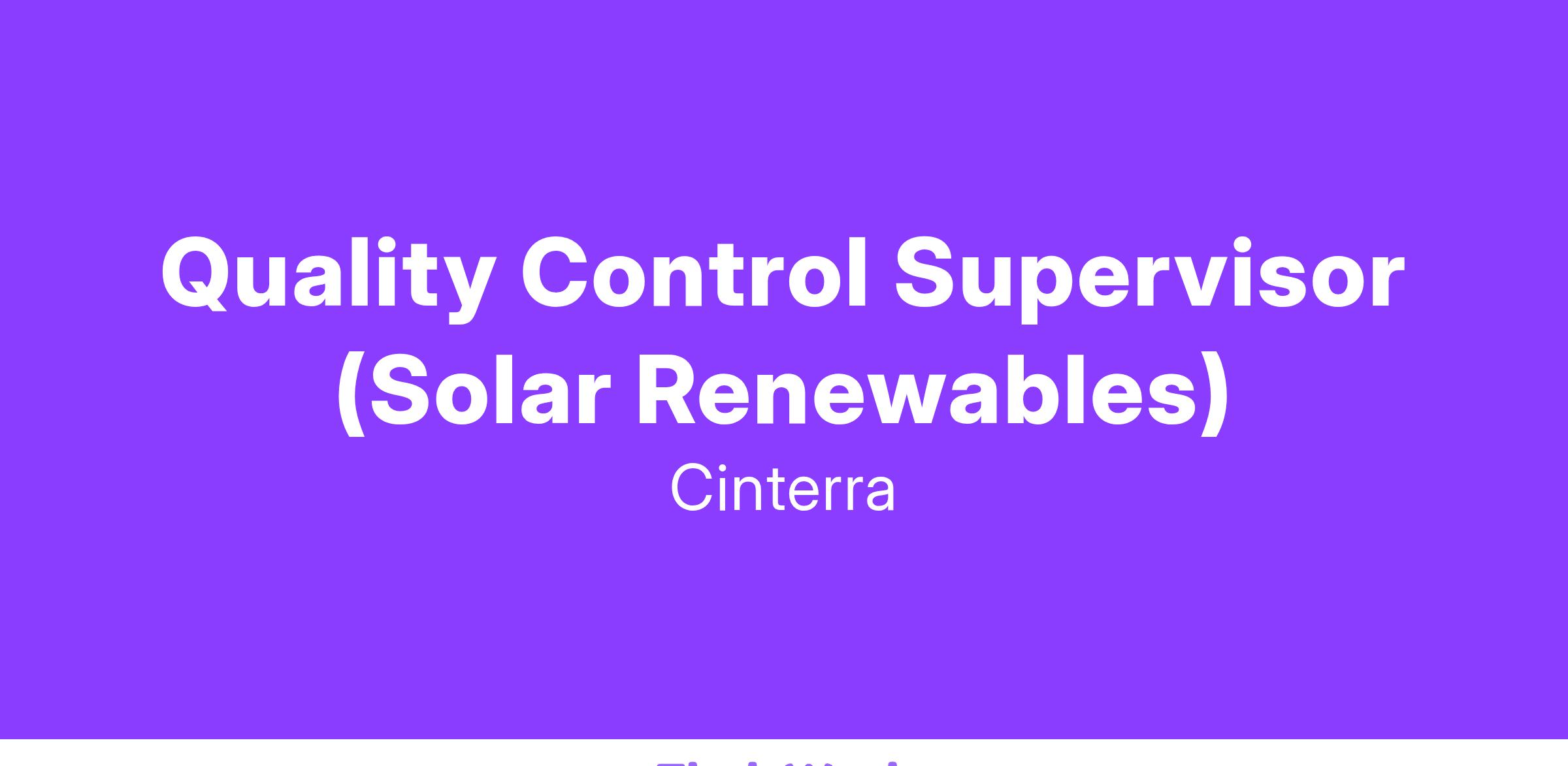 Quality Control Supervisor (Solar Renewables)