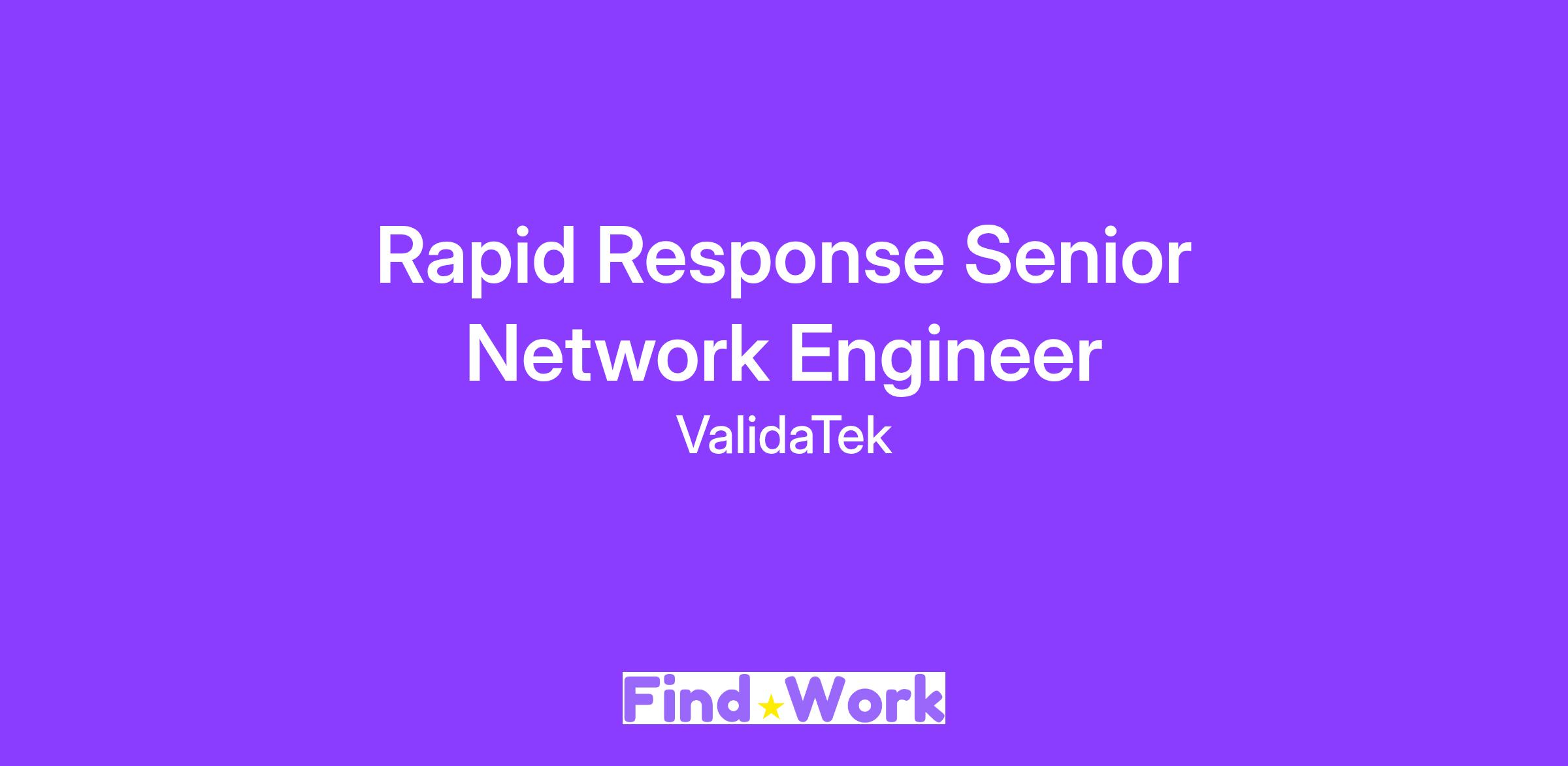 ValidaTek is searching for a Rapid Response Team Sr. Network Engineer who will act as the Subject Matter Expert for the configuration, security, and troubleshooting of the network framework that supports a large DoD IT infrastructure program providing a common view for all enterprise-wide users. As part of the Rapid Response Team, the Sr. Network Engineer will focus on the optimization of the network framework to prevent system intrusions and respond with urgency when a breach occurs.