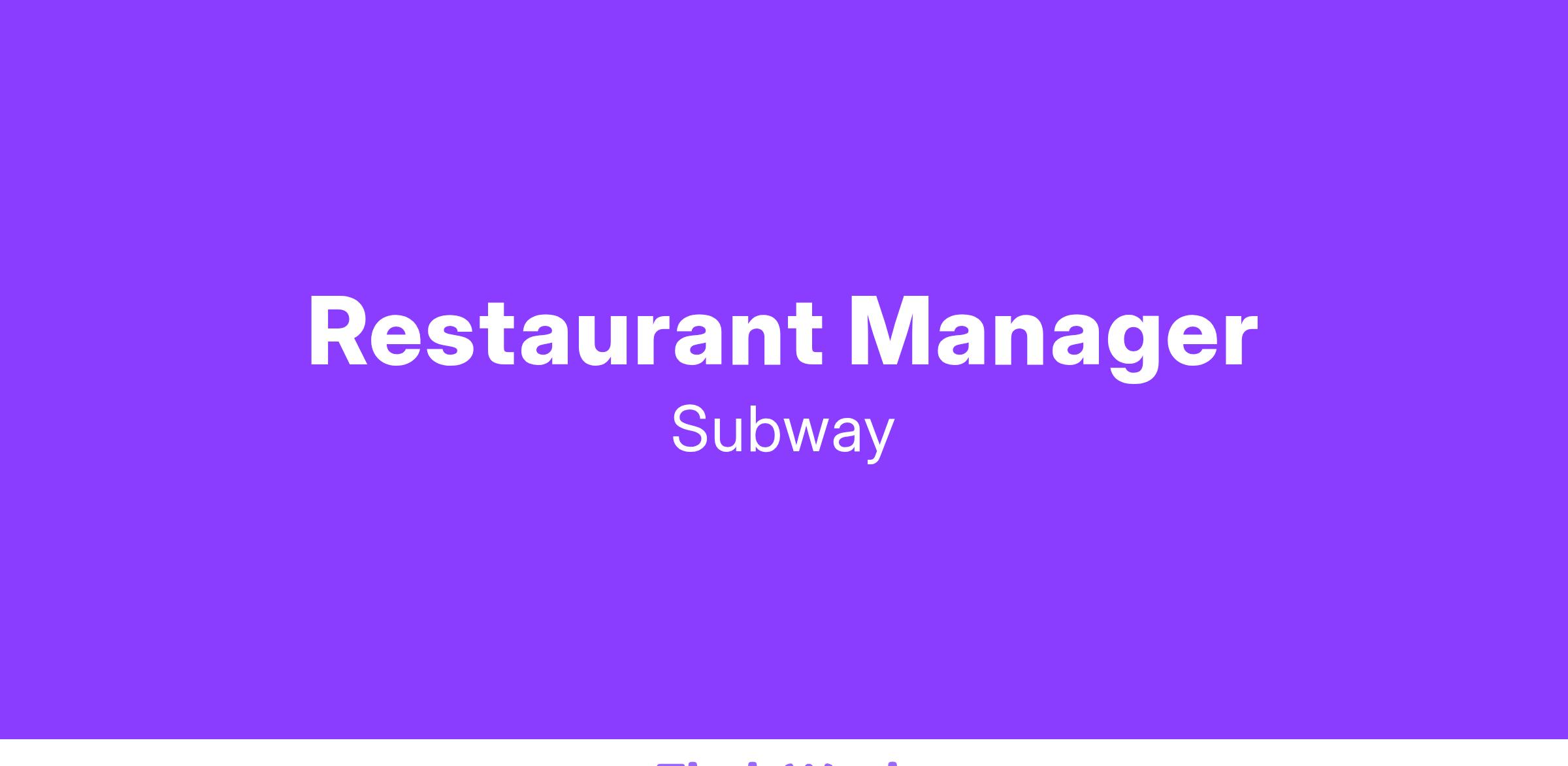 Manage staff and operations of a single restaurant location. Responsible for successful implementation of restaurant policies and procedures while upholding Subway Corporate and company operational guidelines. Ensure restaurant remains compliant with food quality and food safety standards. Commitment to exceptional guest service and meeting customers’ needs promptly. Participative in achieving financial objectives, including increasing sales. Operate the business within compliance of all local, state and federal laws. Uphold all aspects related to staffing expectations. Perform required administrative tasks timely, accurately and thoroughly.
