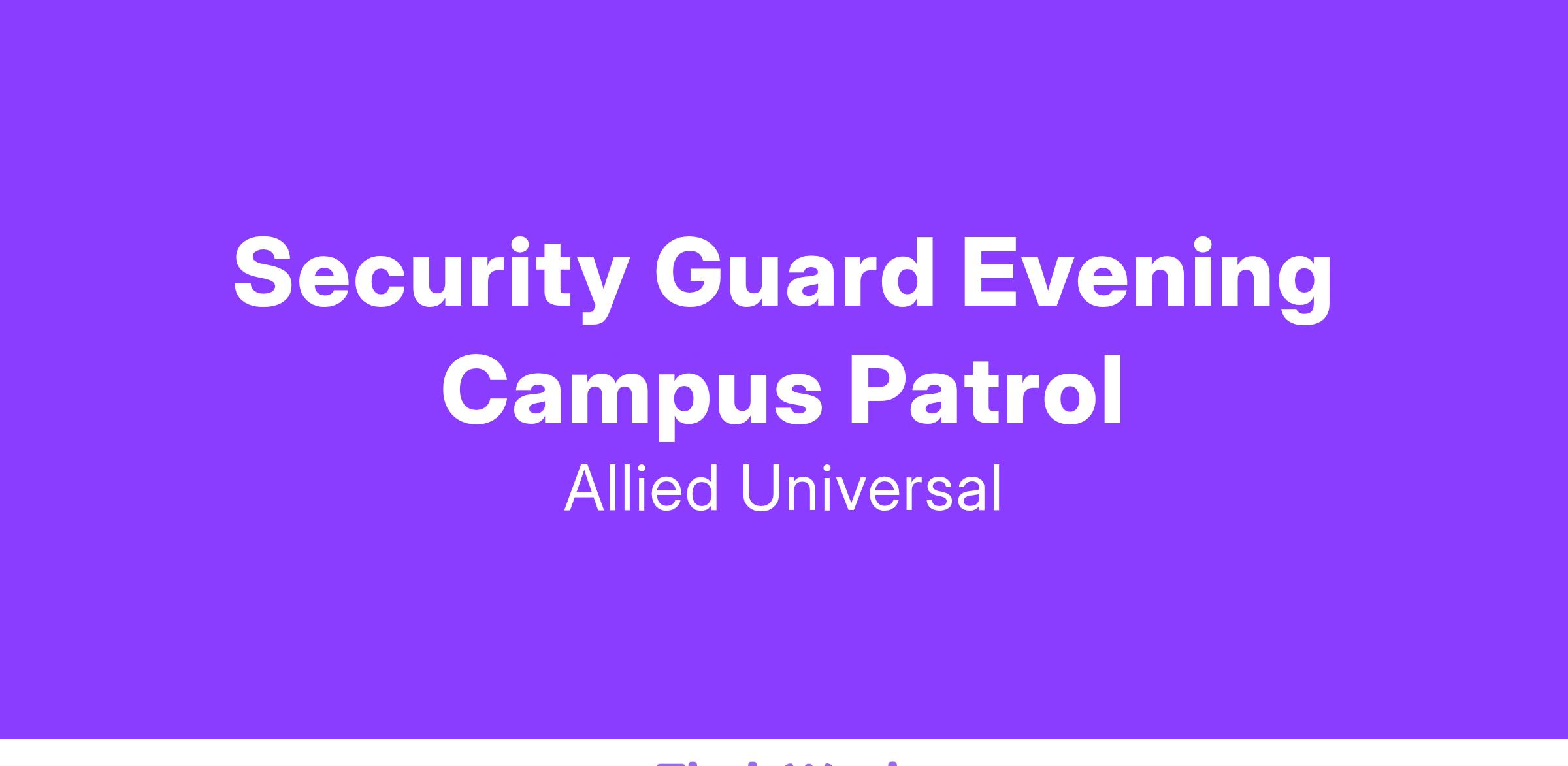 Allied Universal® is an Equal Opportunity Employer. All qualified applicants will receive consideration for employment without regard to race/ethnicity, age, color, religion, sex, sexual orientation, gender identity, national origin, genetic information, disability, protected veteran status or relationship/association with a protected veteran, or any other basis or characteristic protected by law. For more information: www.aus.com