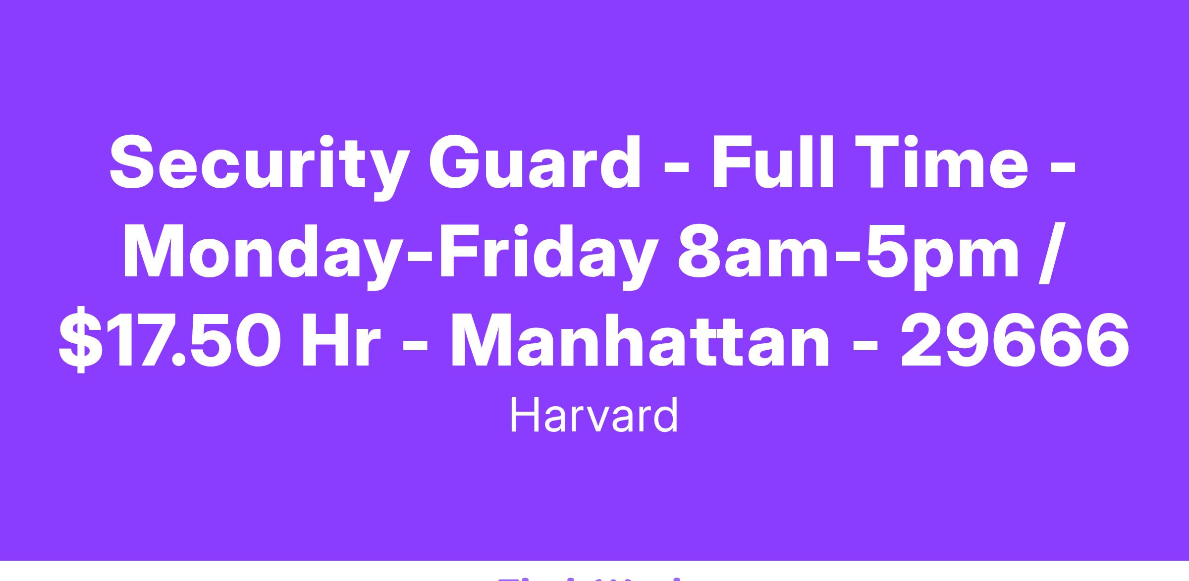 Harvard Protection Services offers a competitive hourly pay rate of $17.50 with health & welfare, dental, vision, sick leave, vacation, and 401K enrollment benefit opportunities.