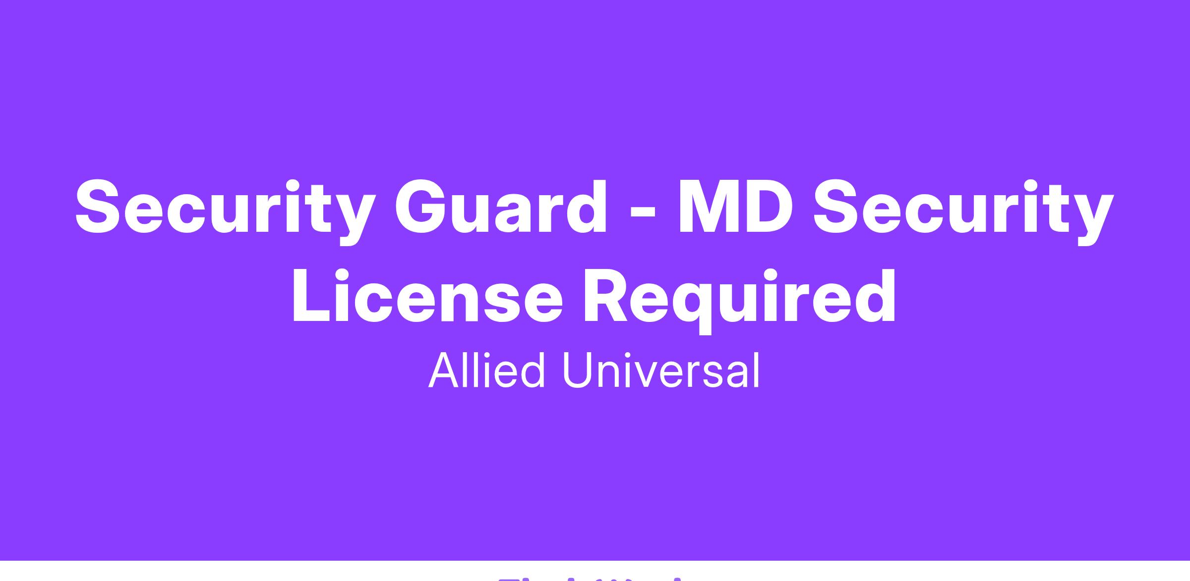 Unarmed Security Guard - Must have a Maryland Security Guard Card