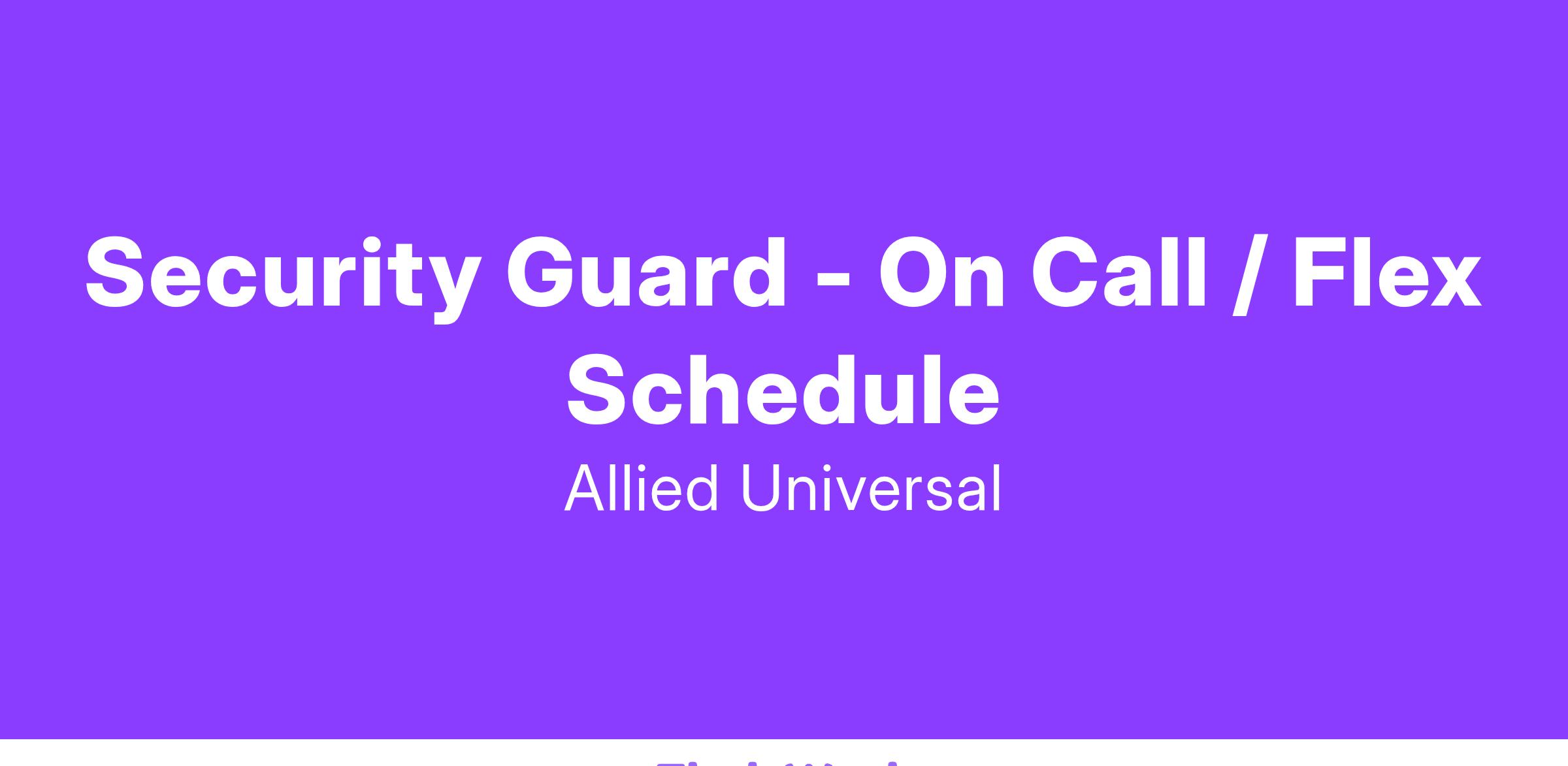 Allied Universal® is an Equal Opportunity Employer. All qualified applicants will receive consideration for employment without regard to race/ethnicity, age, color, religion, sex, sexual orientation, gender identity, national origin, genetic information, disability, protected veteran status or relationship/association with a protected veteran, or any other basis or characteristic protected by law. For more information: www.aus.com