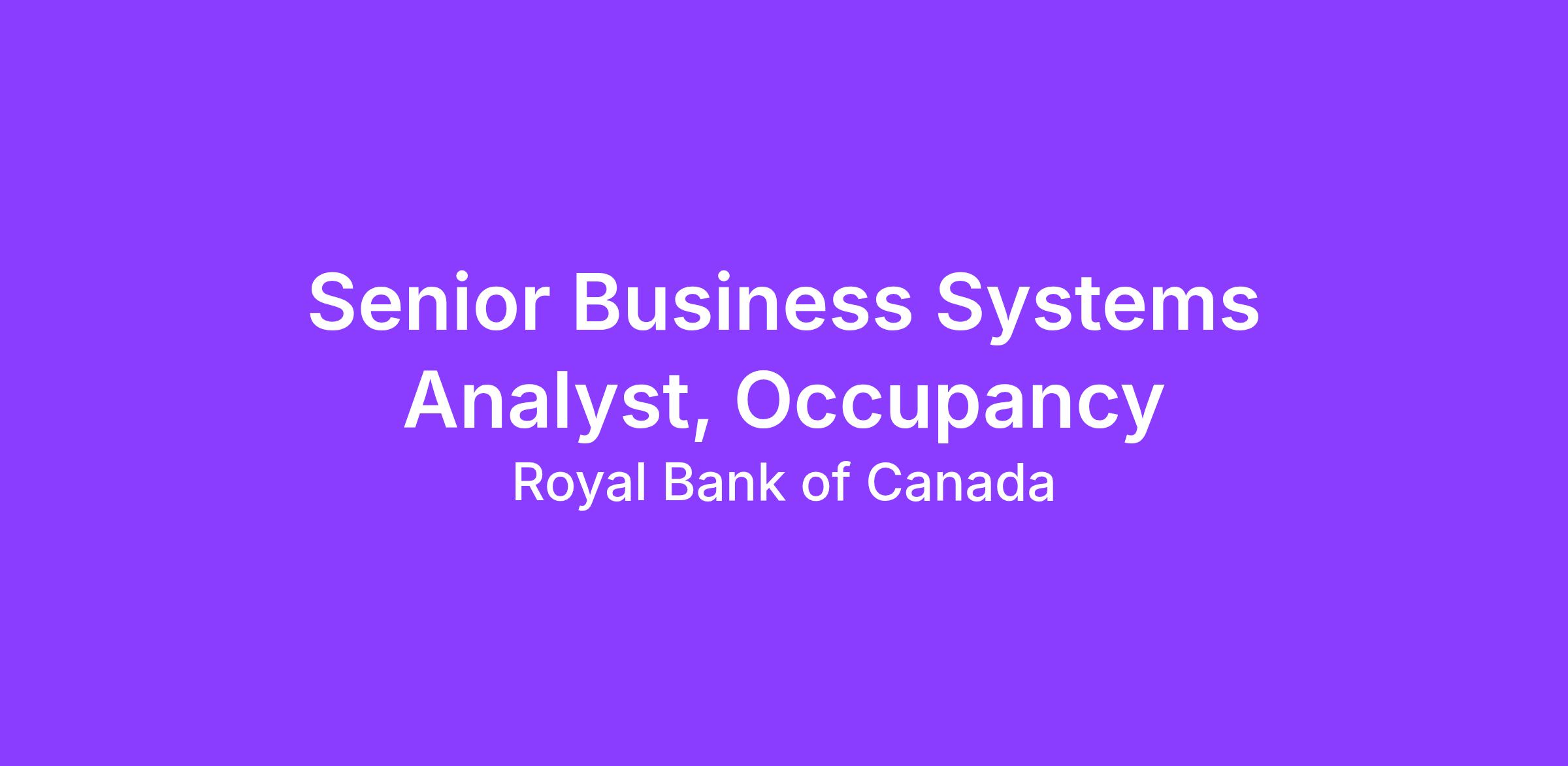 We are looking for a Senior Business Systems Analyst to join the Occupancy Tech team. The mandate is to help deliver digital applications that aim to aid and assist RBC employees to better interact with their workplace, and to use AI to develop enable smart workplace management.