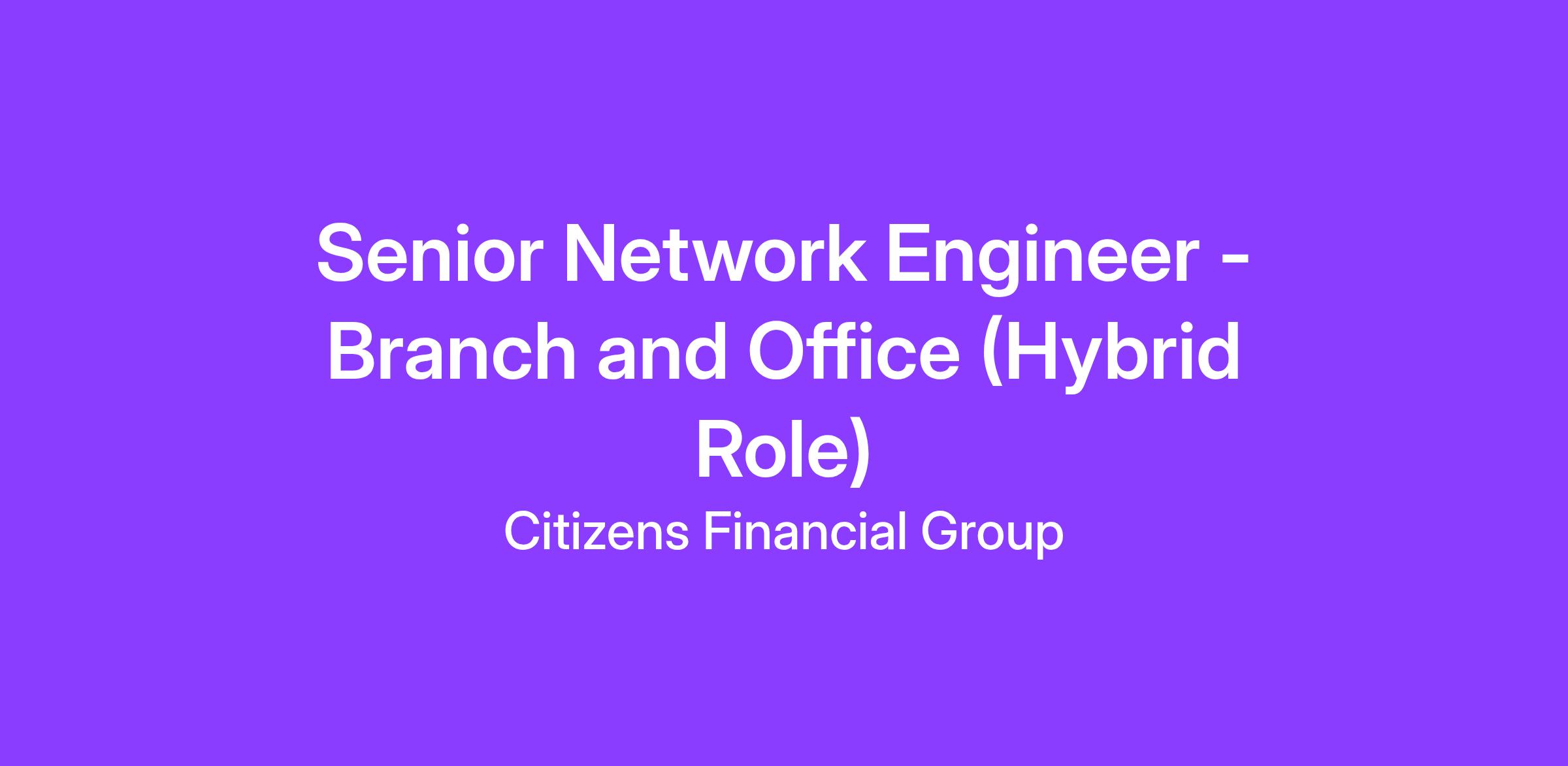 As a part of our team, you’re made ready for a fulfilling career with exciting new challenges and opportunities to stretch yourself! While in this role, you will play a critical role in the management of the computer networks of the entirety of the organization. You will work alongside a team of highly skilled engineers while working to plan, implement and oversee the computer networks and infrastructure critical to Citizen’s business operations. Lastly, you will leverage their technical expertise to ensure the stability of Citizens business operations and successful deployment of new branch and office locations. Most importantly, at Citizens, we’re more than a bank and here, you’ll experience new things, create new opportunities, think beyond your role and make an impact!