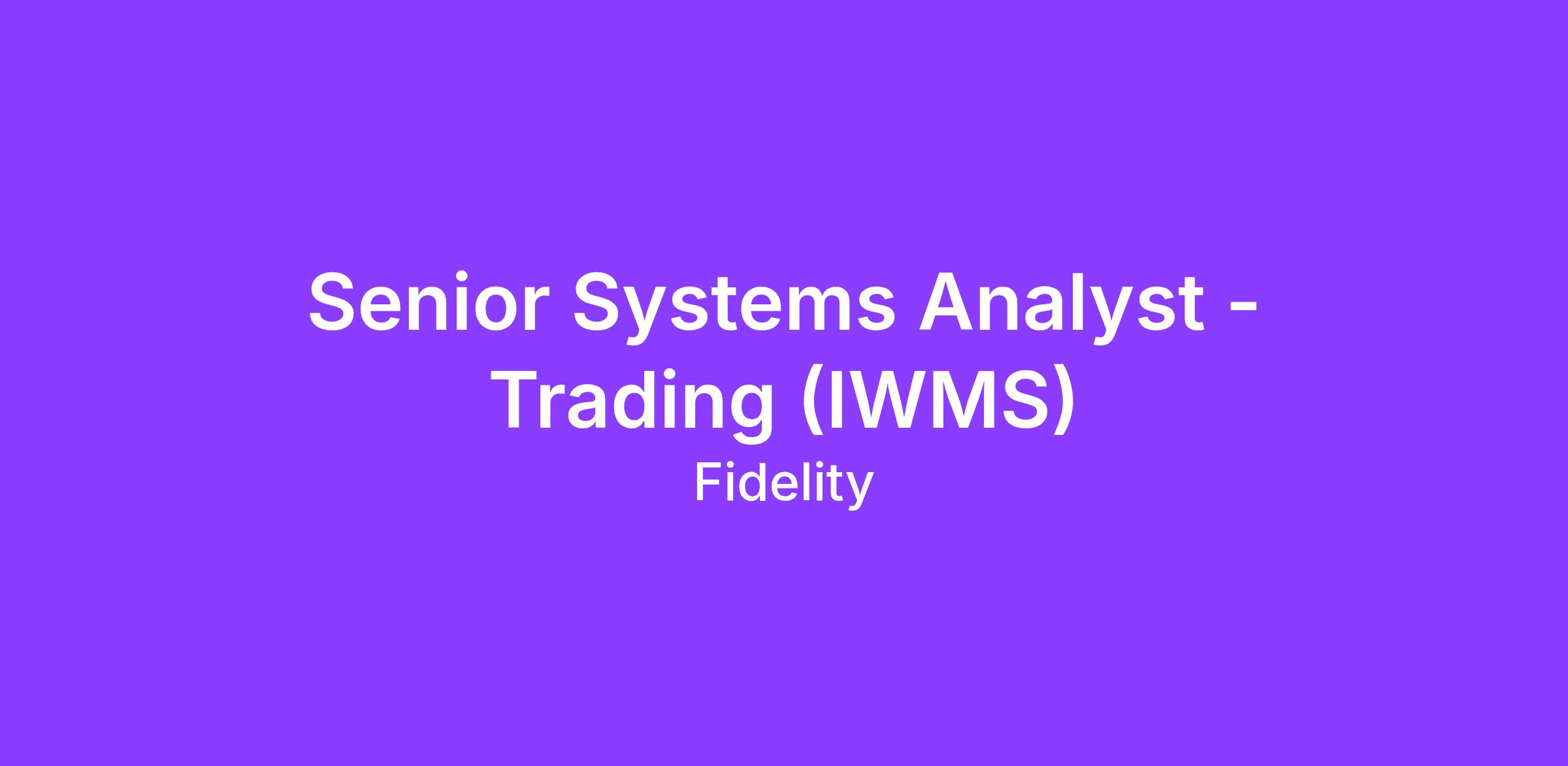 Fidelity Institutional Technology is looking for an experienced Senior Systems Analyst to join us in the design and development of innovative technology for financial advisors and their clients using the latest technology stack in a collaborative and engaging environment.