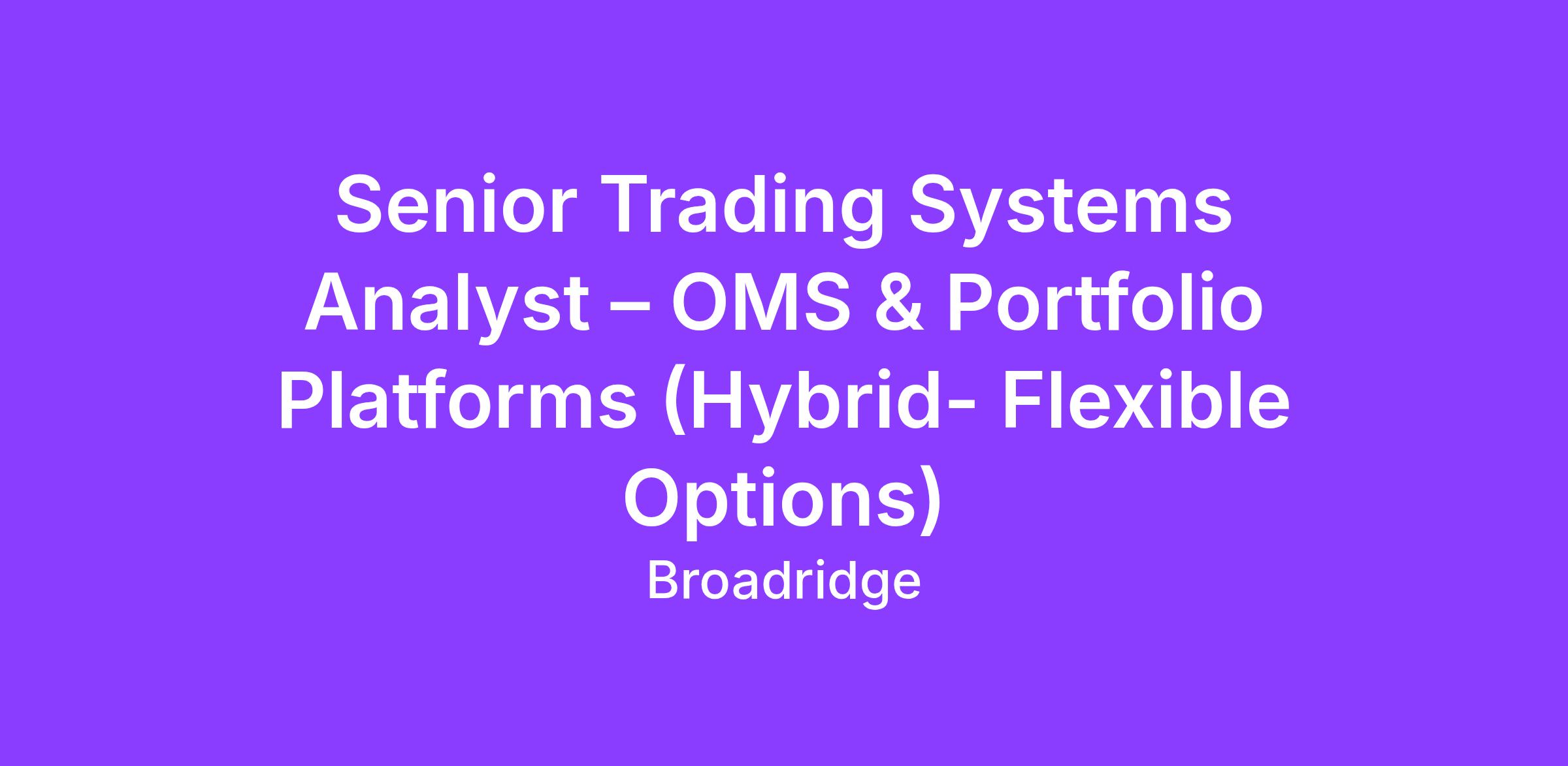 Broadridge is Growing! We are seeking a Senior Trading Systems Analyst to work across trading, OMS, portfolio management, and market data platforms within the financial domain. This role blends advanced technical analysis, financial systems expertise, and hands-on problem solving across integrated applications.