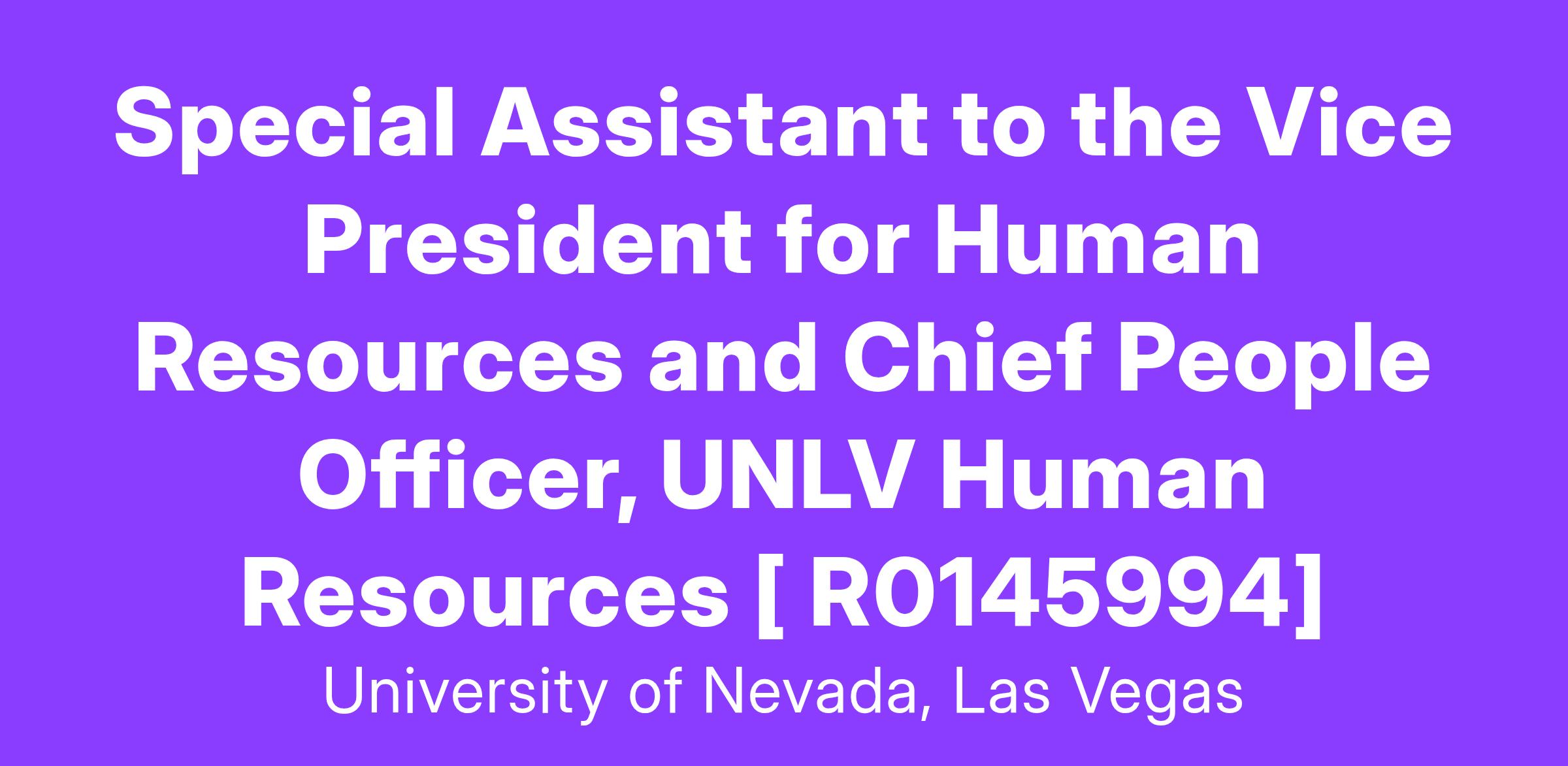 The University of Nevada, Las Vegas invites applications for Special Assistant to the Vice President for Human Resources and Chief People Officer, UNLV Human Resources [ R0145994]