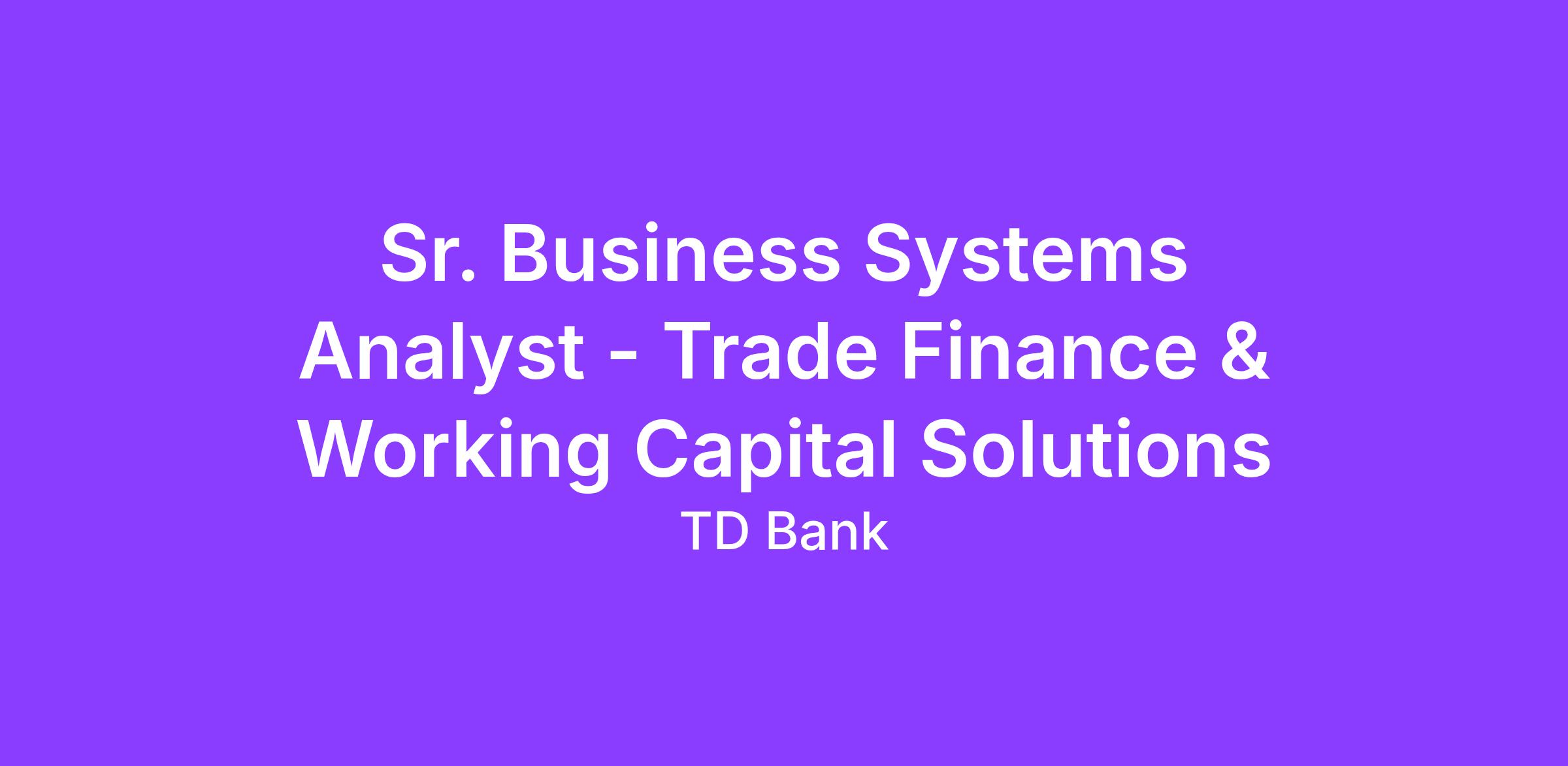 The Senior Business Systems Analyst (Sr. BSA) – Trade Finance & Working Capital Solutions is a senior-level delivery role responsible for eliciting, analyzing, and managing business and system requirements for complex application and integration solutions within the Trade Finance and Working Capital Solutions portfolio.