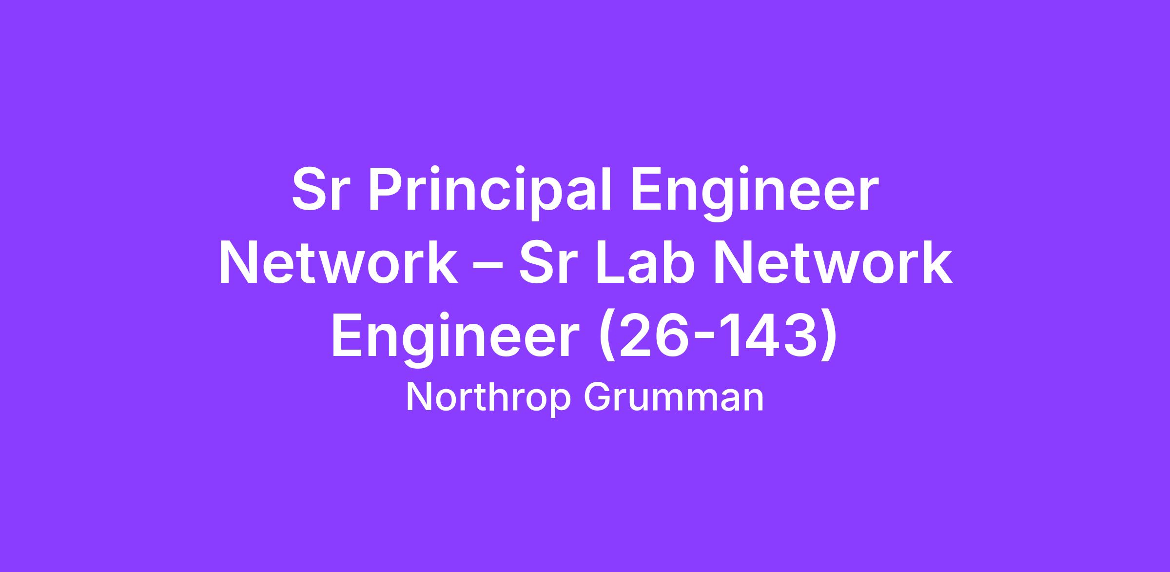 Northrop Grumman Space Systems—Missile Defense Integration offers an excellent opportunity for a Sr Principal Engineer Network – Sr Lab Network Engineer (26-143) to join our team of talented and diverse professionals. Located in Colorado Springs, CO, this role is essential to supporting the U.S. President, the Secretary of Defense, and combatant commanders at the strategic, regional, and operational levels.