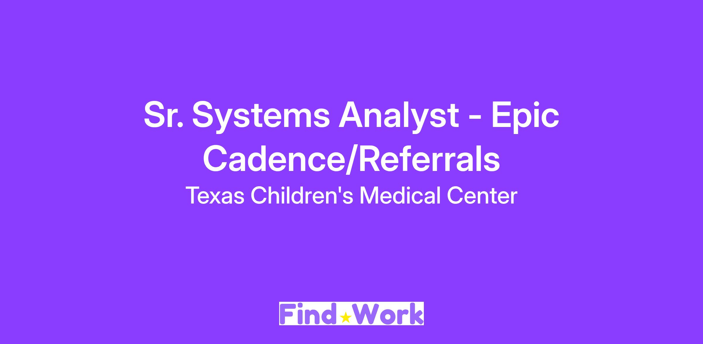 We’re searching for a Senior Epic Systems Analyst (Epic Cadence/Referrals), someone who’s ready to be part of the best ranked children’s hospital in Texas, and among the best in the nation. In this position, you will have a major role in developing Epic application solutions by investigating processes to understand data and communications flow with individual tasks and transactions within an Integrated Delivery System.
