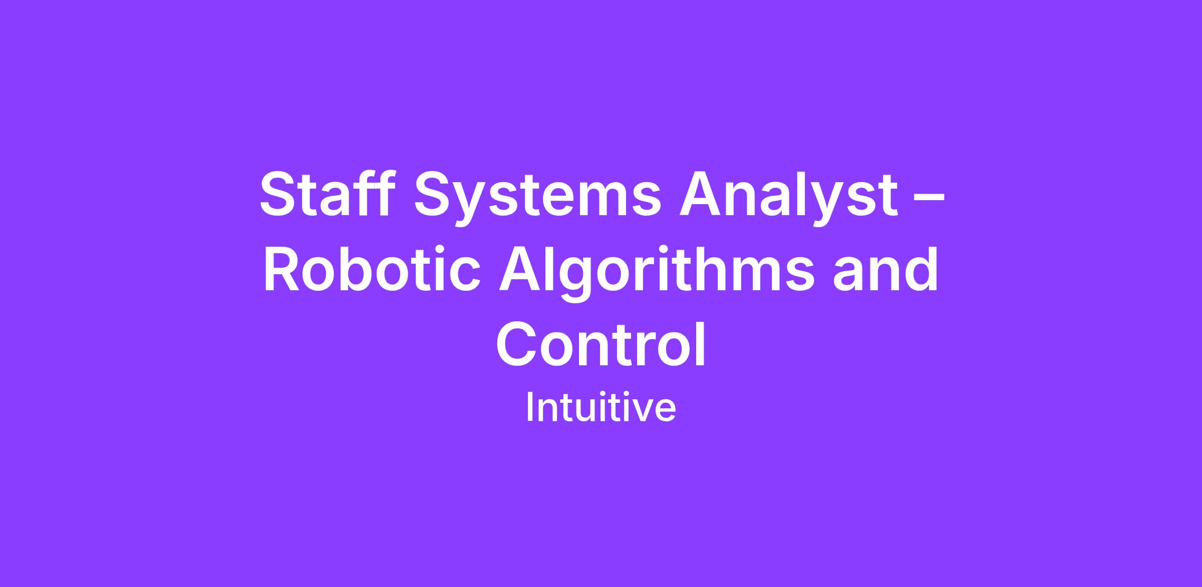 A Senior Systems Analyst is responsible for the detailed design and implementation of controllers and algorithms to assess novel instrument concepts and visualization schemes running on Intuitive’s latest surgical robots or new platforms. This responsibility includes integrating and evaluating fully functional prototypes then promoting translation of concepts into finished products.