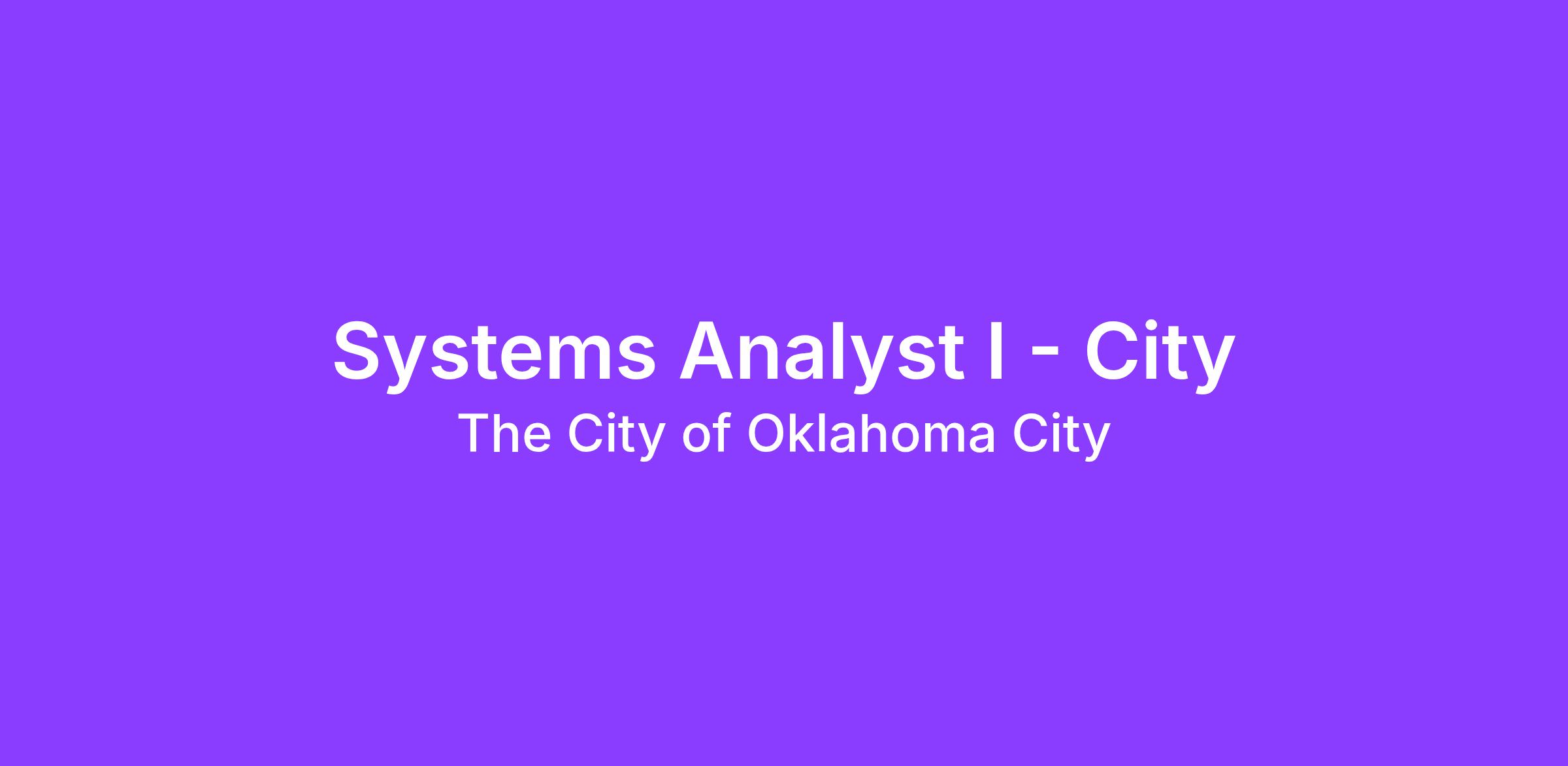 This position is located in the Technology Application Support Division of the Information Technology Department within the City of Oklahoma City and can be assigned to several lines of business within the department. Work is performed on an independent basis, requiring previous knowledge of development and/or support for commercial and custom applications serving a broad range of business needs. Essential job functions include: designing, developing, evaluating, acquiring, modifying and maintaining applications and/or systems to be utilized within a large municipal government enterprise. Specific tasks include, but are not limited to technical analysis of business application requirements; preparation of logic flow charts and layout diagrams; evaluation of computer hardware and software specifications; provisions of supportive documentation for work performed; data acquisition and application development; program/system maintenance (tests/modifications); work planning and allocation; and information exchange; analyzing cost statistics and preparing economic comparisons of alternatives. As a technical expert, the employee acts as a liaison between the department, internal customers and/or external vendors. A Systems Analyst I may be responsible for supervising the work performance of Programmers and Programmer/Analysts. Work efforts and final products are reviewed at the discretion of the supervisor.