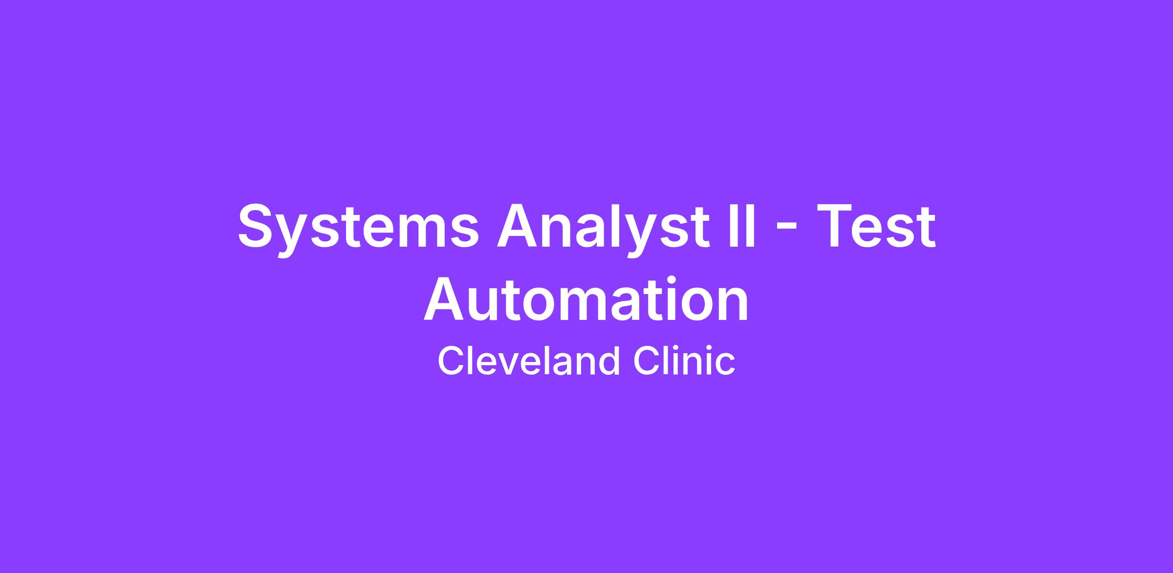 Systems Analyst II - Test Automation
