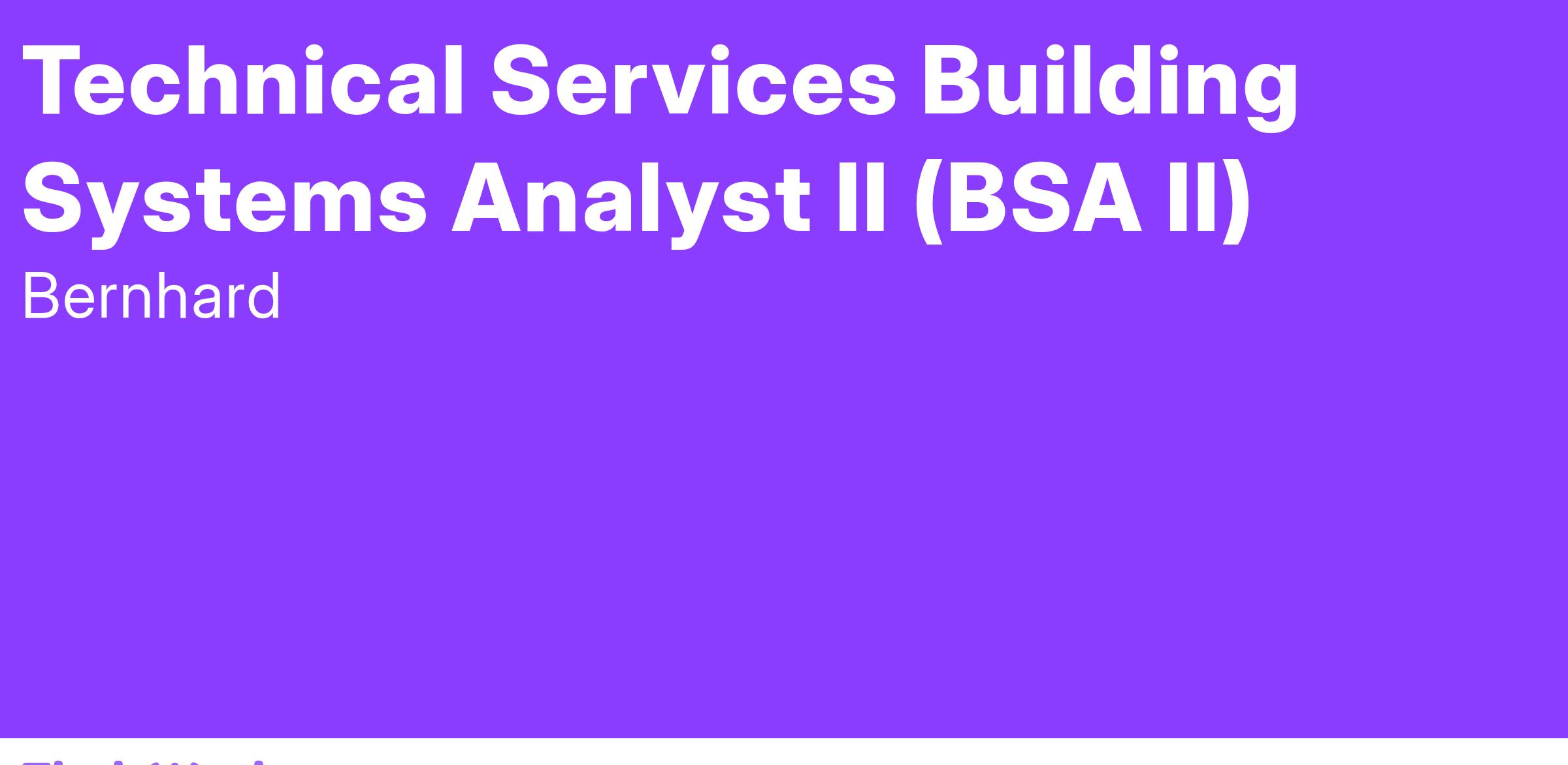 The IS Technical Services Building Systems Analyst II (BSA II) is highly skilled member of the IS Technical Services (TS) team, with an engineering background, responsible for evaluating, verifying, and optimizing the operation of new and existing building systems both on-site or remotely. The role requires the ability to plan, document, and conduct work requiring judgement, using Bernhard and energy management industry best practices. The BSA II should possess the ability to work independently to perform most assignments, with technical guidance for complex or difficult problems and minimal direction. The primary expectation for the role is to produce optimized energy and project outcomes for retro-commissioning (RCx) and relevant new construction commissioning (Cx) scopes with a solutions based approach and mind set. Additionally, the BSA II will collaborate with the entire project delivery team including: construction management, facilities management, engineers, and trade partners to fulfill the essential duties and responsibilities of the position.