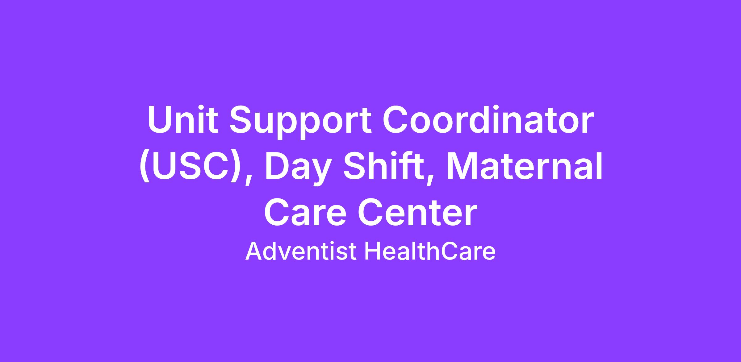 Unit Support Coordinator (USC), Day Shift, Maternal Care Center