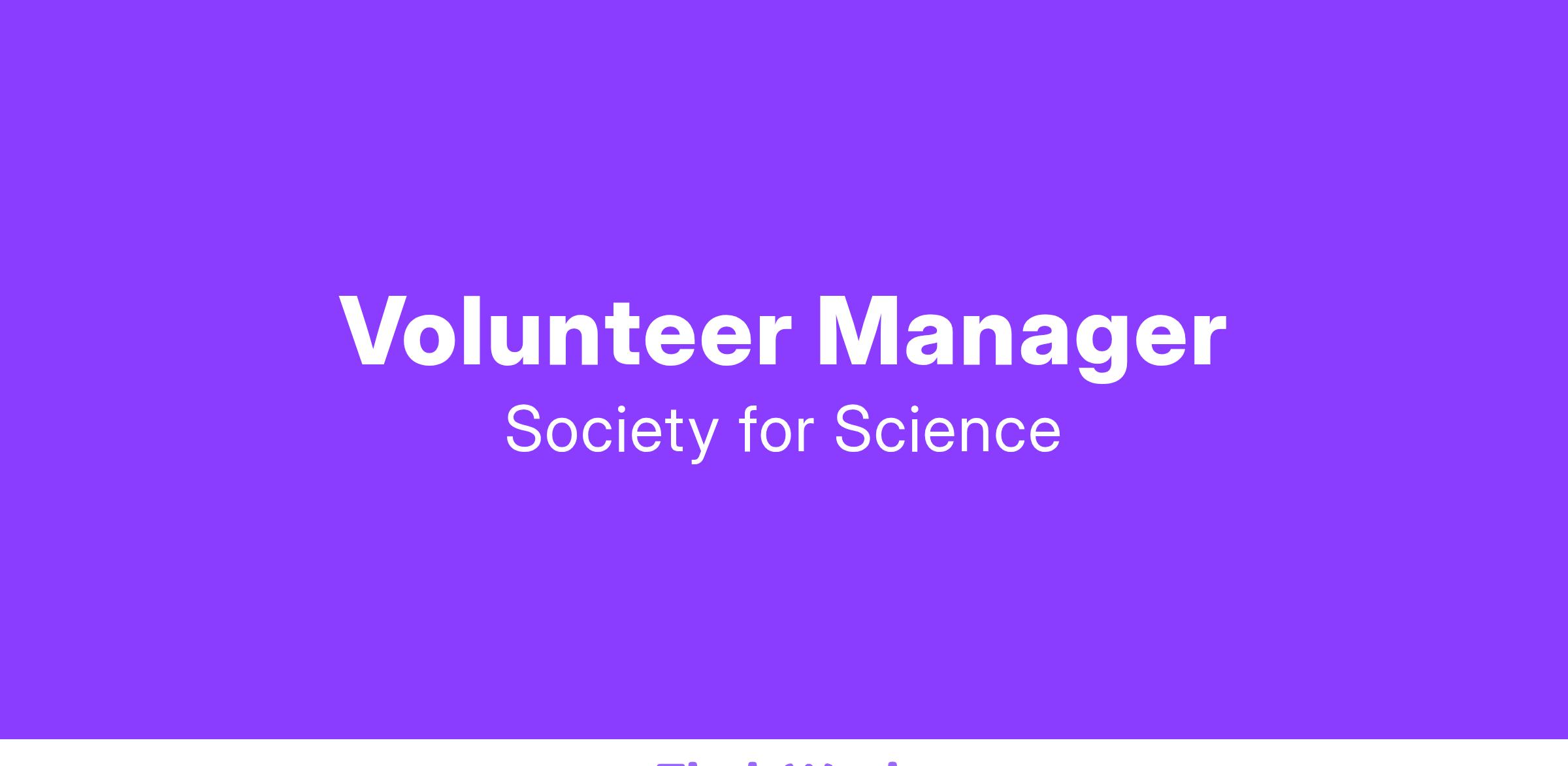 The Society is seeking a Volunteer Manager to contribute to the Science Education Programs Department. This person will primarily support the Regeneron International Science and Engineering Fair (ISEF). This position reports to the Chief Program Officer while also working in collaboration with multiple departments and in direct coordination with the Regeneron ISEF Program Manager. This is an exempt position.